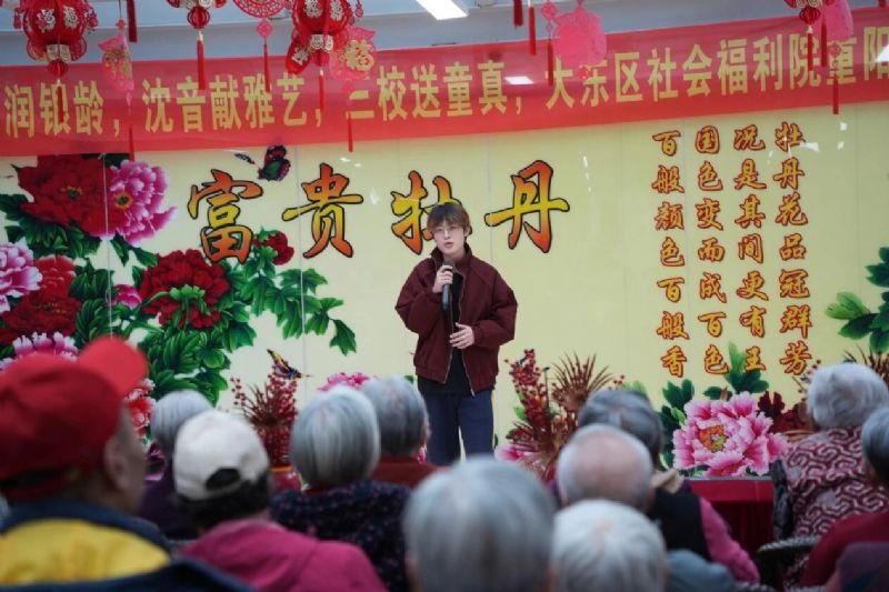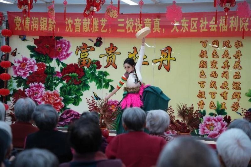 为深入践行社会主义核心价值观,大力弘扬敬老爱老的中华民族传统美德,10月29日,在重阳节来临之际,戏剧影视学院党委“红色文艺轻骑兵”小分队走进沈阳市大东区社会福利院,以歌曲、舞蹈、乐器演奏、诗朗诵等形式,为老人们送上节日祝福与艺术关怀。