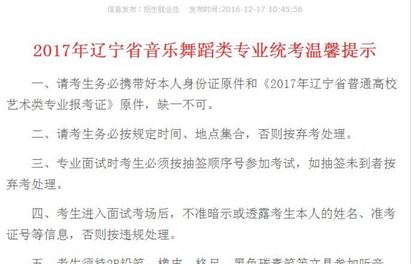 2017年辽宁省音乐舞蹈类专业统考温馨提示