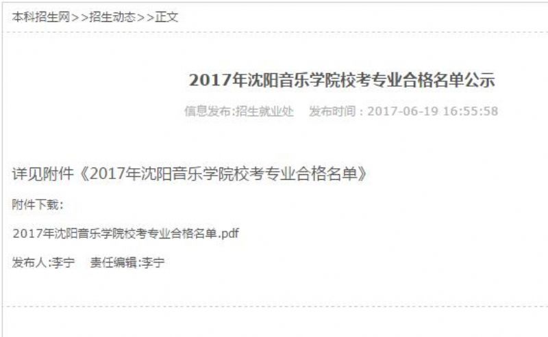 2017年沈阳音乐学院校考专业合格名单公示
