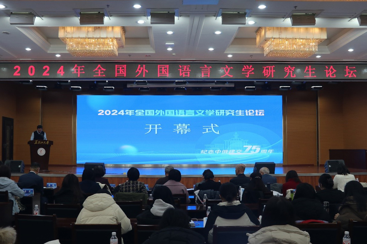 The 2024 National Graduate Forum on Foreign Languages and Literature was held on November 23-24 atHeilongjiang University. The event was jointly organized by theuniversity’sGraduate School,theInstitute of the Russian Language,theSchool of Translation and Interpreting Studies,theCenter for Russian Language Literature and Cultural Studies, theSchool of Foreign Languages and Literature (School of Region and Country Studies), and the editorial office ofForeign Language Studies. The opening ceremony was attended by the university's president Wang Jingbo, leaders from the Graduate School and Heilongjiang University Press, as well as over a dozen experts from the field of foreign language studies and more than 100 graduate students . The ceremony was hosted by Sun Chao, Dean of the School of Advanced Translation.