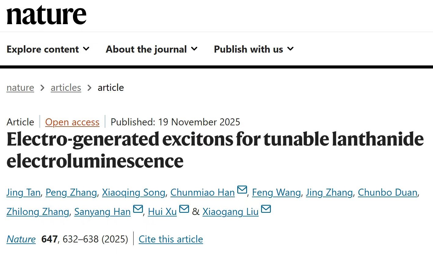 稀土纳米晶像大海中一座 “绝缘小岛”唯有光能飞跃“天堑”激发她绚丽多彩的光芒电却无路可达6686许辉教授团队与合作者在“小岛”周围架起无数有机“光电桥梁”天堑变通途让“电激发绝缘体发光”的不可能变为可能北京时间2025年11月20日这项被团队打磨了十四年的研究成果以“捕获电生激子实现可调谐的镧系纳米晶电...
