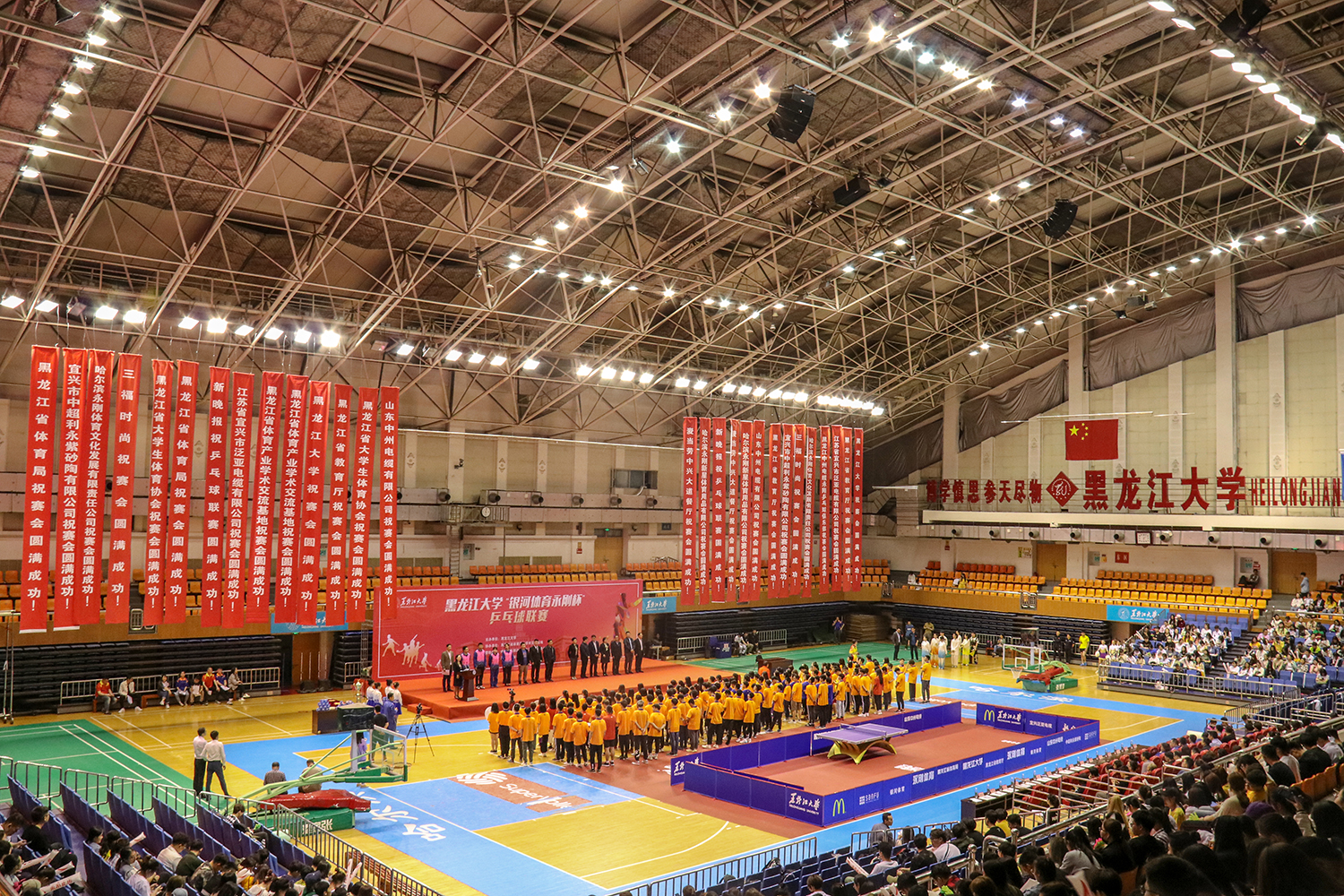 为进一步丰富校园体育文化活动,全面提升学生身体素质,5月10日晚,我校2019首届“银河体育永刚杯”乒乓球联赛在校体育馆开幕。校党委副书记丁宏,省体育局社体处处长姚伟丽,省教育厅体卫艺处正处级调研员郭青山,前乒乓球国手、哈尔滨永刚体育文化发展有限责任公司董事长王永刚,我校党委宣传部、党委学工部、团委、教...