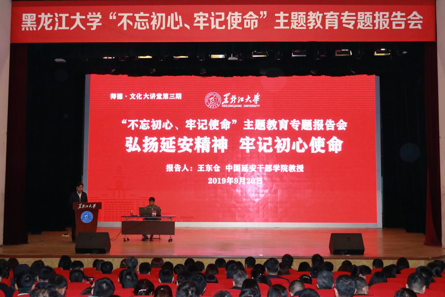 9月20日上午,我校在音乐厅举行“不忘初心、牢记使命”主题教育专题报告会。中国延安干部学院王东仓教授以“弘扬延安精神,牢记初心使命”为题作了报告。省委第七巡回指导组李继峰、江家奇同志出席报告会。全体校领导、全校中层干部、全体教工党员、学生党员代表参加报告会。党委宣传部部长张学成主持报告会。王东仓教授...