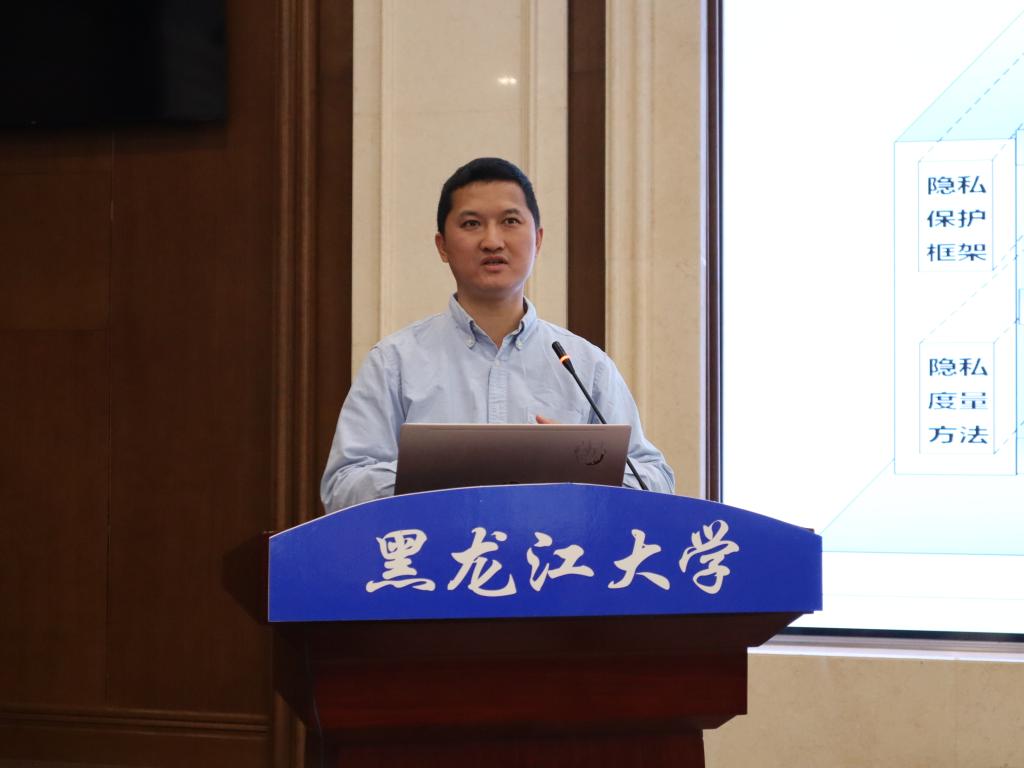 南京航空航天大学朱友文教授以《本地差分隐私效用和效率提升机制研究》为题进行报告,介绍本地差分隐私的概念、基础算法和主要特点,及近期相关的本地差分隐私工作,主要包括面向大数据域的高效本地差分隐私机制,以及数值个性化等场景下效用优化的本地差分隐私机制。