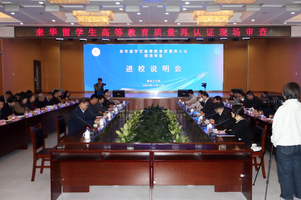 12月14日至15日,根据中国教育国际交流协会《关于开展来华留学生高等教育质量认证项目首批再认证院校现场审查工作的通知》(际协便〔2023〕48号),来华留学生高等教育质量认证专家来校开展现场审查工作。此次现场审查由北京语言大学原校长刘利带队,专家组组长上海大学国际教育学院姚喜明教授,专家组成员大连外国语大学汉学院院长陈子骄教授、河北大学国际交流与教育学院原院长郭伏良教授、青岛大学国际教育学院留学生招生办公室主任王芳、中国教育国际交流协会教育服务认证部高级项目官员魏千千参加了审查工作。校长王敬波,省纪委监委驻6686纪检监察组组长梁东辉,副校长张颖春、钟卫东、井立强、李卓,以及学校再认证工作领导小组成员单位、来华留学生教学培养单位主要负责人参加了现场审查相关活动。