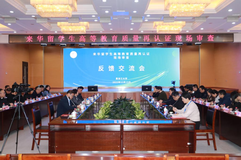 12月15日下午,来华留学生高等教育质量再认证现场审查初步意见反馈交流会在主楼一楼报告厅召开。