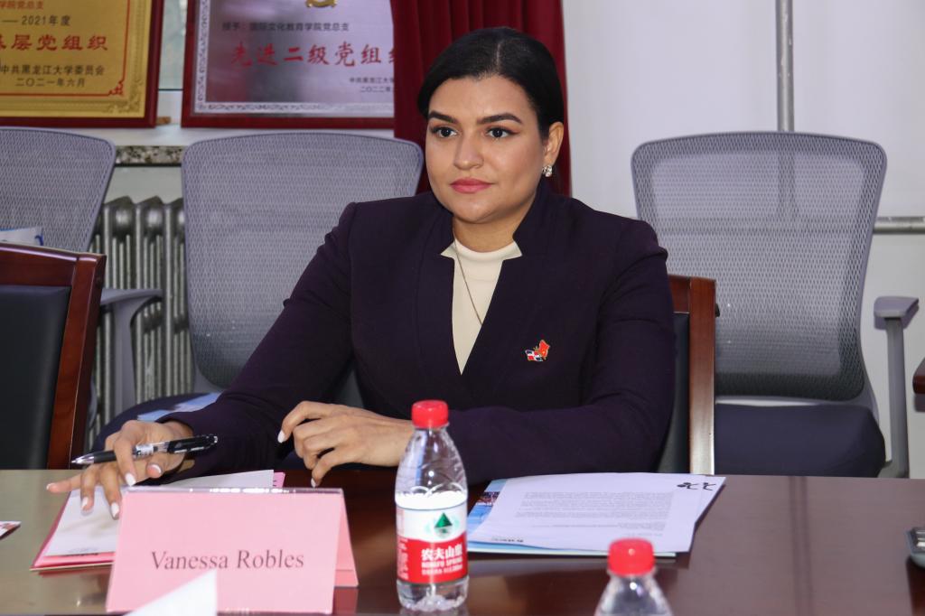 瓦妮莎院长代表孔子学院多方理事发言。她表示,此次拜访的目的是进一步深化双方的交流合作,希望未来能够有更多的项目让两校的师生获益,有更多的学生参与两校之间的合作项目。她赞赏中国有着丰富的历史和文化,衷心希望多米尼加的学生能够通过孔子学院的各类中文课程、文化活动和比赛提高中文水平,将来有机会能够赴中国留学。