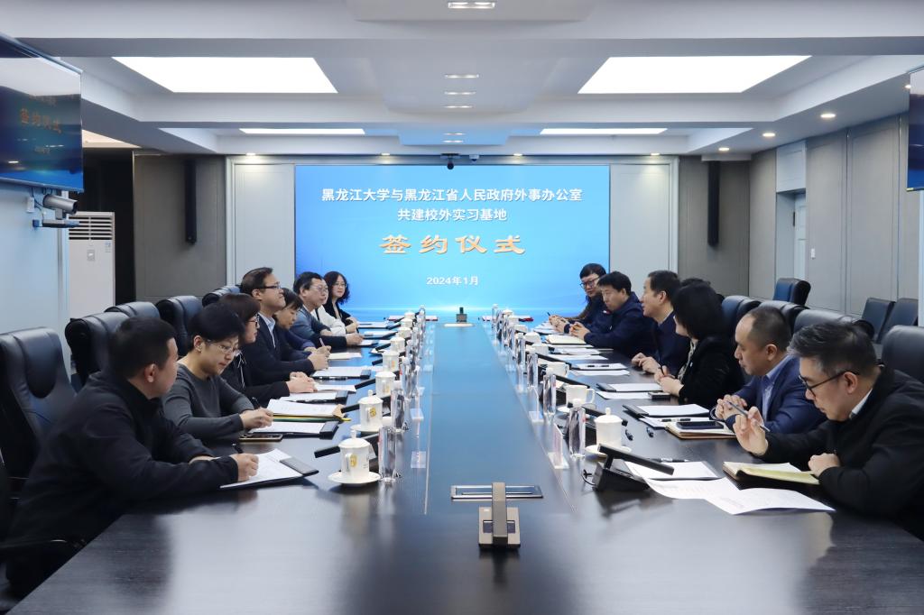1月31日下午,副校长井立强带队赴黑龙江省人民政府外事办公室开展交流座谈,双方就加强外事合作、共建实习实践育人基地等相关事宜进行深入交流,同时举行政校共建校外实习基地签约仪式。省外办副主任杨鸿鹏出席活动,省外办人事处、美大处、欧非处、欧亚处、东北亚处、亚洲处相关负责人,我校东语学院、俄语学院、西语学院、应用外语学院、外事处相关负责人参加座谈。
