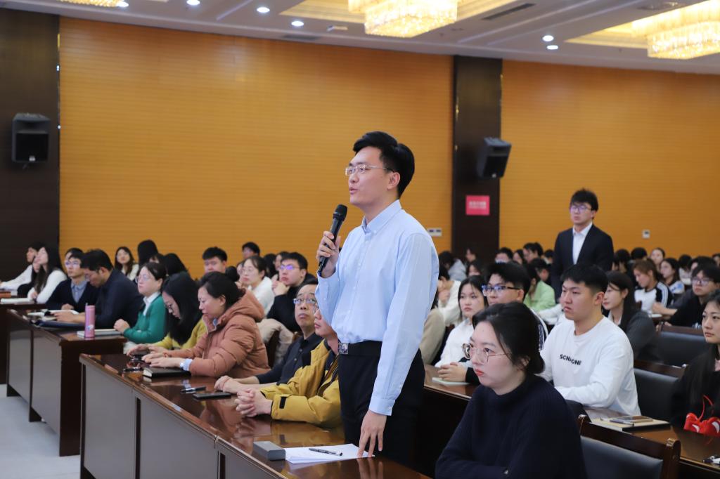 报告会现场,师生们踊跃提问,现场气氛热烈。林郑月娥与师生们亲切互动,围绕香港特别行政区数字化建设、能源转型发展,以及内地学生赴港学习和发展等问题,给予了细致地解答。