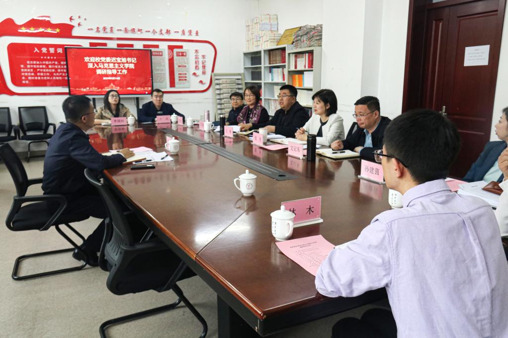 为贯彻落实习近平总书记关于学校思政课建设的重要指示精神,进一步推进新时代思政课守正创新,5月14日下午,校党委书记迟宝旭到马克思主义学院调研指导学院工作。学院领导班子成员、学科带头人、党支部书记和教师代表参加会议。会议由学院党总支书记张丹主持。