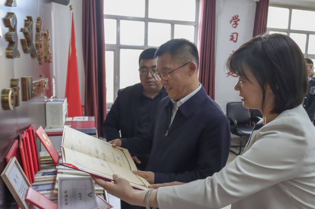 会后,迟宝旭查阅了马克思主义学院建设的工作成果展。(摄影:王佳星 谢童 李卓颖 唐仁元)