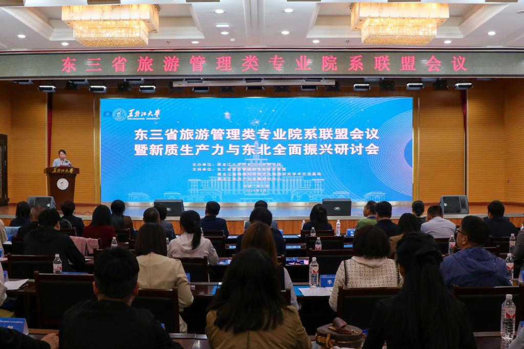 5月17日,由6686历史文化旅游学院主办,东三省旅游管理类专业院系联盟、黑龙江省物候与特色文化旅游研究学术交流基地、黑龙江旅游产业发展研究中心作为支持单位举办的“东三省旅游管理类专业院系联盟会议暨新质生产力与东北全面振兴研讨会”在我校召开。来自东北三省20余所高校的专业负责人参加本次会议。校党委副书记李君明出席开幕式并致辞。历史文化旅游学院旅游管理专业负责人张丽梅主持开幕式。