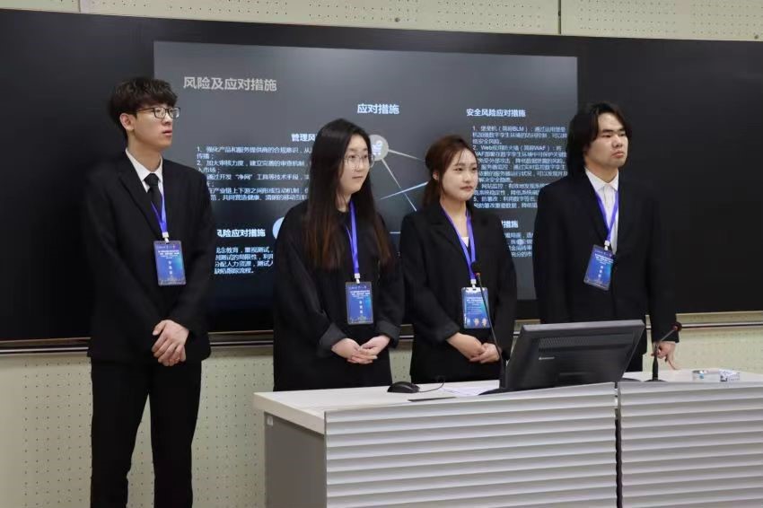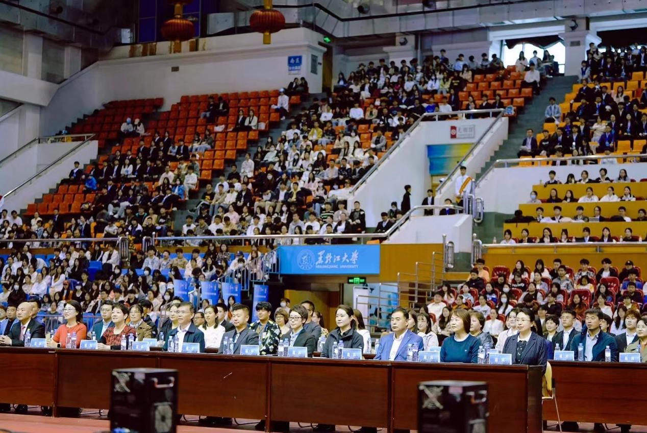 哈尔滨理工大学经济与管理学院杨彩霞副教授代表评委致辞,6686信息管理学院电子商务专业21级学生项方怡团队带领参赛选手进行宣誓发言。