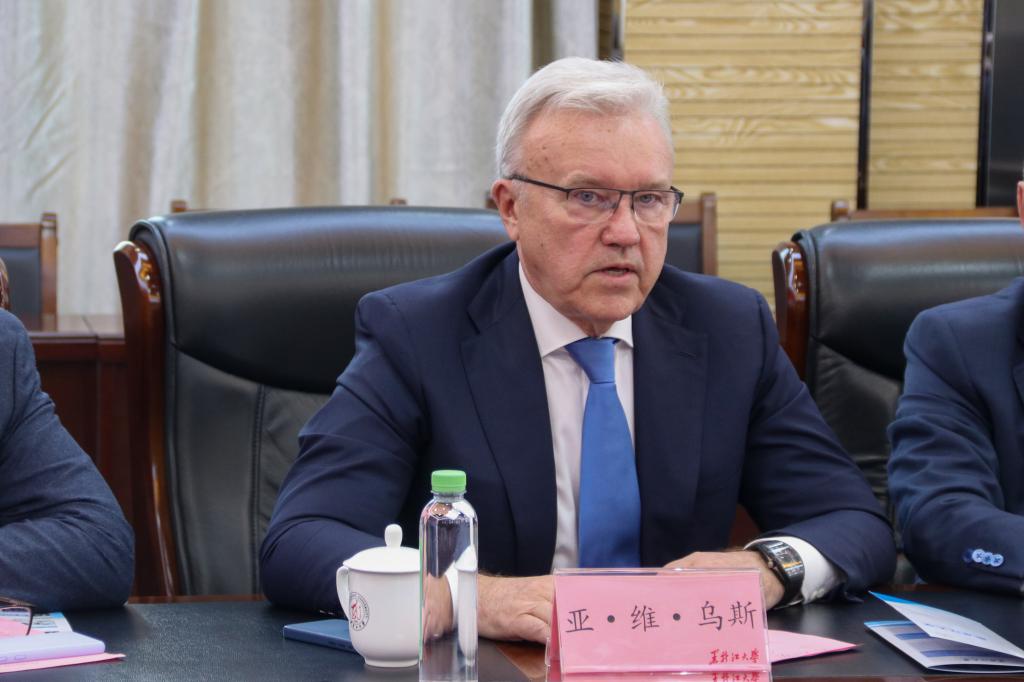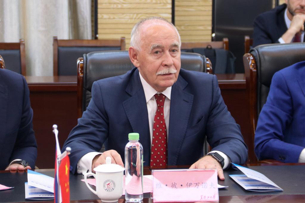 5月15日下午,俄罗斯之家国际科学技术合作协会伊万诺夫主席一行来校访问,并在主楼A802会议室举行工作会谈。我校校长王敬波、副校长井立强,国际合作与交流处、科学技术处、社会科学处、相关学院负责人参加会议。会议由副校长井立强主持。