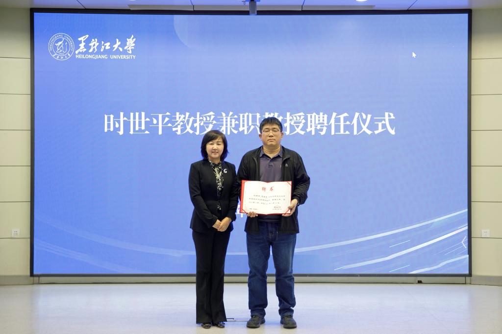 聘任仪式上,于文秀介绍了时世平教授的学术声誉及学术科研贡献等情况,并为时世平教授颁发6686中国语言文学兼职教授聘书。