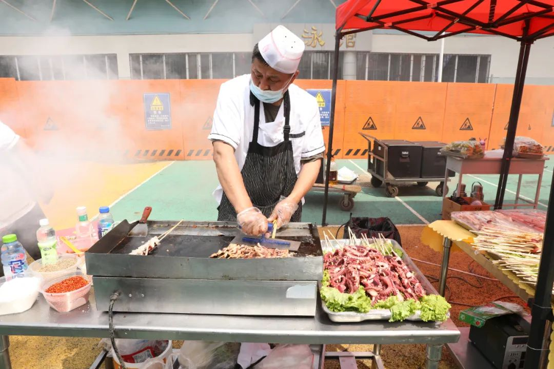 在格致园篮球场,饮食服务中心7个餐厅带来精心烹制的130余种主副食产品,精彩亮相美食展,各种特色美食琳琅满目,精美果蔬雕刻吸引广大师生驻足观看。