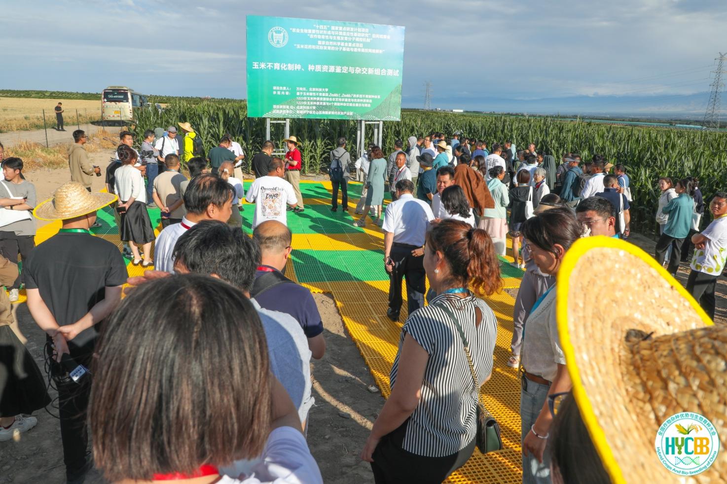 大会执行主席万向元教授带领与会人员到田间进行实地观摩,并介绍了团队在新疆伊犁综合试验站160亩试验田开展的玉米不育化制种、种质资源鉴定与杂交新组合测试等相关工作。
