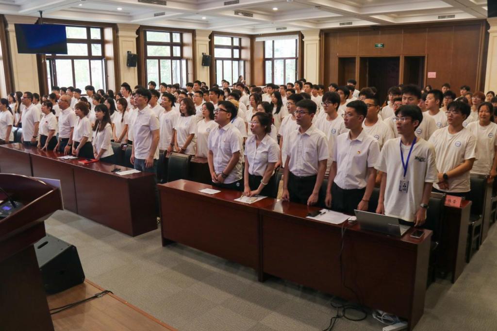 数据科学与技术学院党总支书记金鹏为本次夏令营团队授旗。