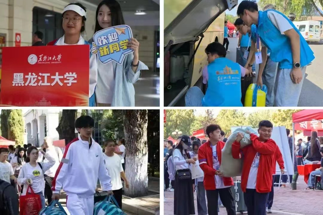 报到当天,学校在哈尔滨站、哈尔滨西站设置了接站点,校内安排中转车和近千名志愿者,设置党员先锋岗,手递手护送新生到公寓楼。