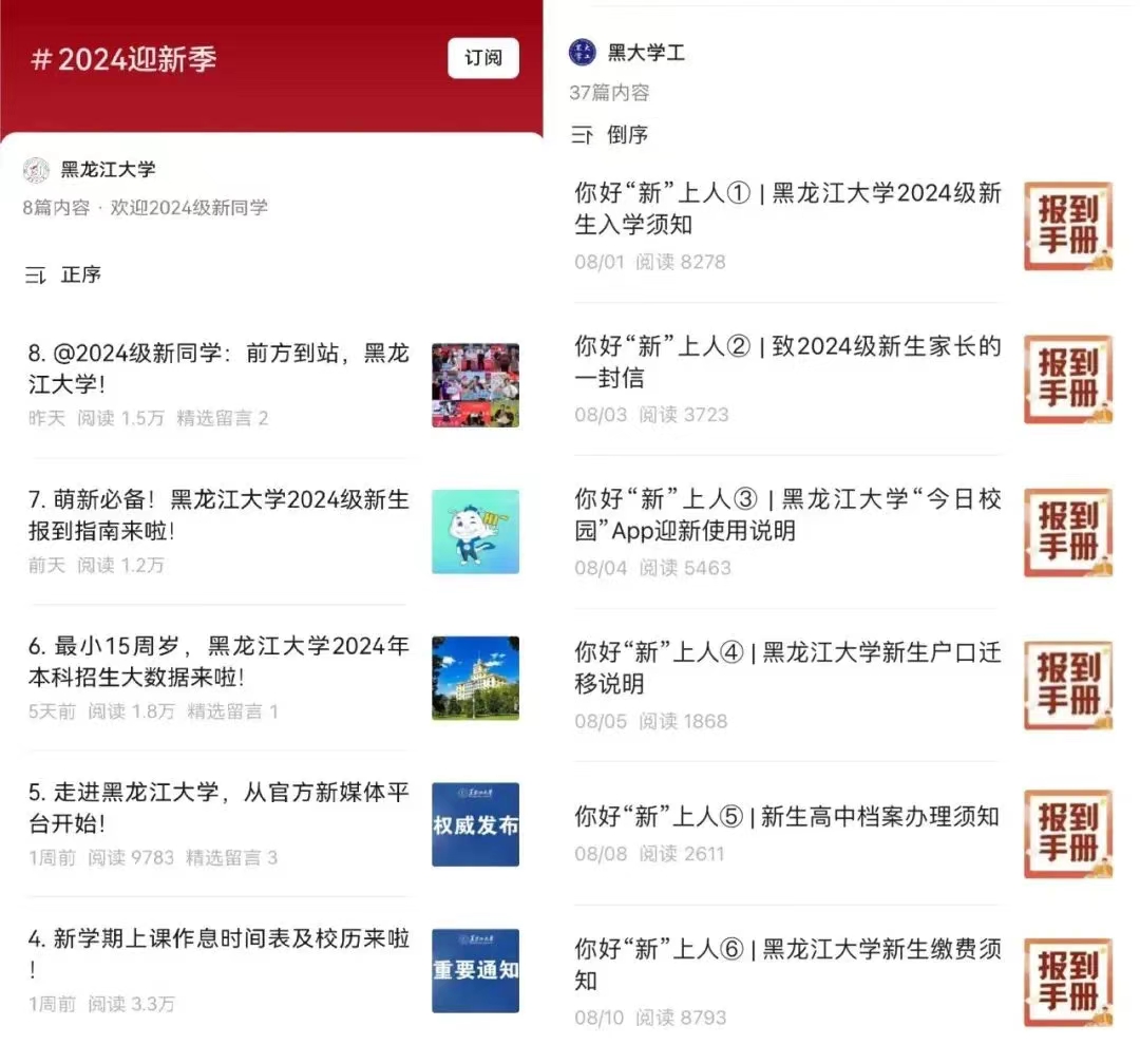 学校通过新媒体平台发布《2024迎新季》《你好“新”上人》等系列推送,前置发布报到要求和注意事项。
