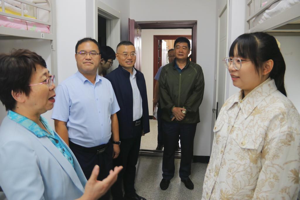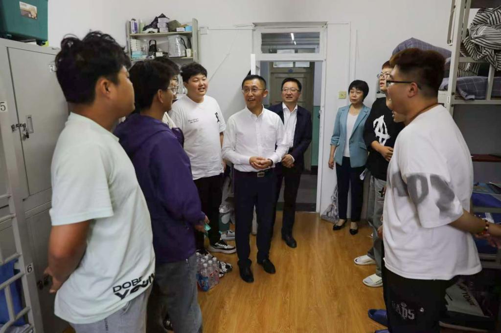 9月1日下午,校党委书记迟宝旭、校长王敬波、党委副书记李君明、副校长井立强在学校办公室、学生工作部、校团委、研究生院等相关职能部门负责同志陪同下走访2024级新生寝室,实地了解学生的生活情况和住宿环境,向同学们致以亲切的关怀与问候。