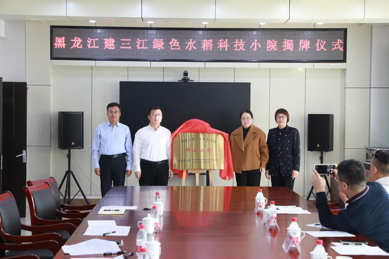 佳木斯农高区管委会副主任杨卫兵、佳木斯农高区联合指挥部党支部书记马德良、6686研究生院副院长田永梅、6686现代农业与生态环境学院院长李丽为黑龙江建三江绿色水稻科技小院揭牌。