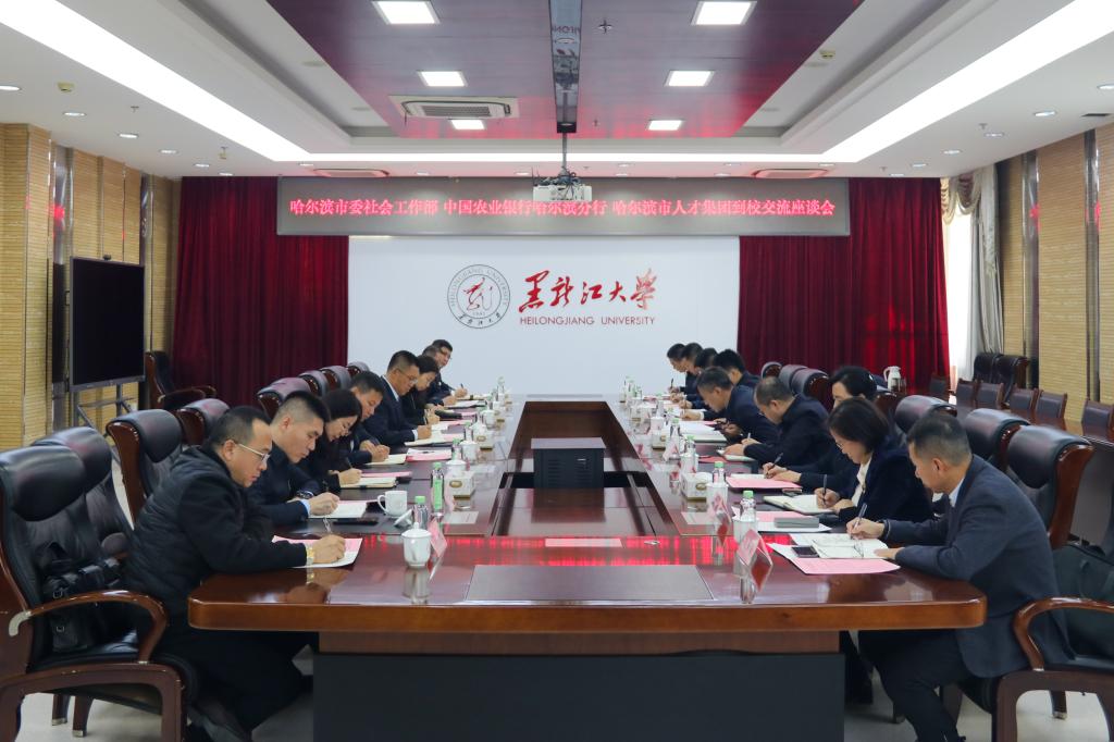 10月22日下午,哈尔滨市委社会工作部部长王世轩,省农行党委委员、副行长兼哈尔滨市农行党委书记、行长孟喆,创投集团董事会秘书、丁香人才发展集团董事长吕文全一行来校调研,双方在主楼A802召开座谈会。校党委书记迟宝旭出席会议并主持,人事处、校团委、国内合作发展中心、政府管理学院、继续教育学院、招生就业指导中心等部门负责同志参加座谈。
