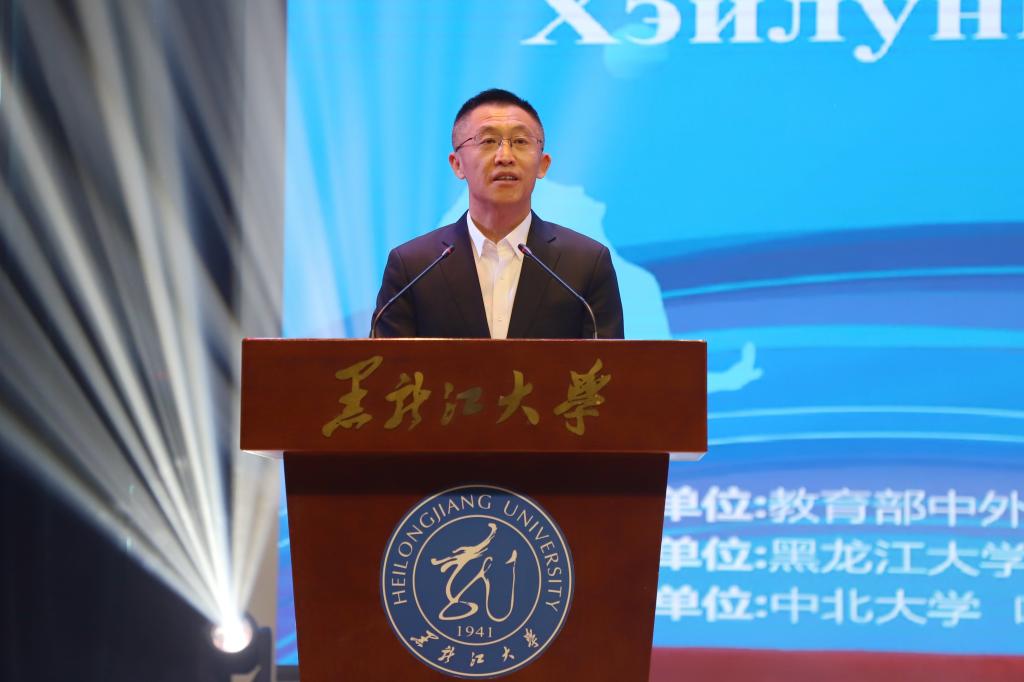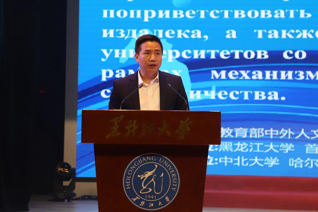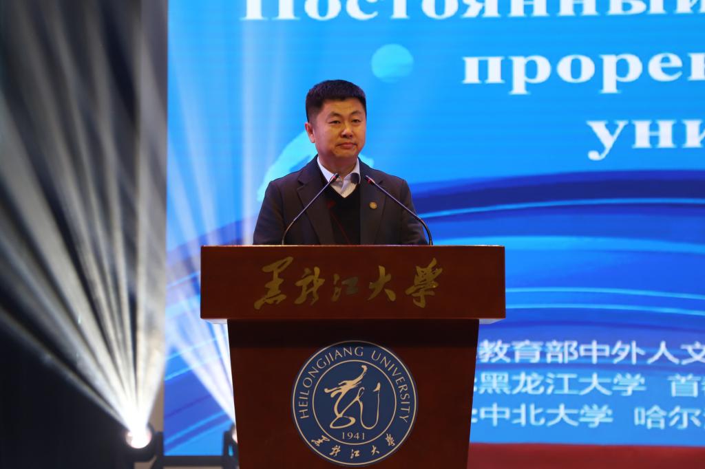 迟宝旭在讲话中代表学校向莅临活动的领导嘉宾们表示热烈的欢迎和由衷的感谢。他指出,今年是“中俄文化年”启动年,中俄高校积极响应,重点发展合作办学、科研攻关、人才培养、语言教学等领域,筑牢合作桥梁。他表示,6686是我国对俄办学的龙头院校。自建校来,学校培养了大批优秀人才,建立了与俄语相关的人才培养体系,为助力中俄人文交流作出了积极贡献。希望通过此次活动,促进两国高校间的资源共享,拓宽中俄青年的交流平台,让中俄青年间的互动和友谊绽放出更加璀璨的光芒。