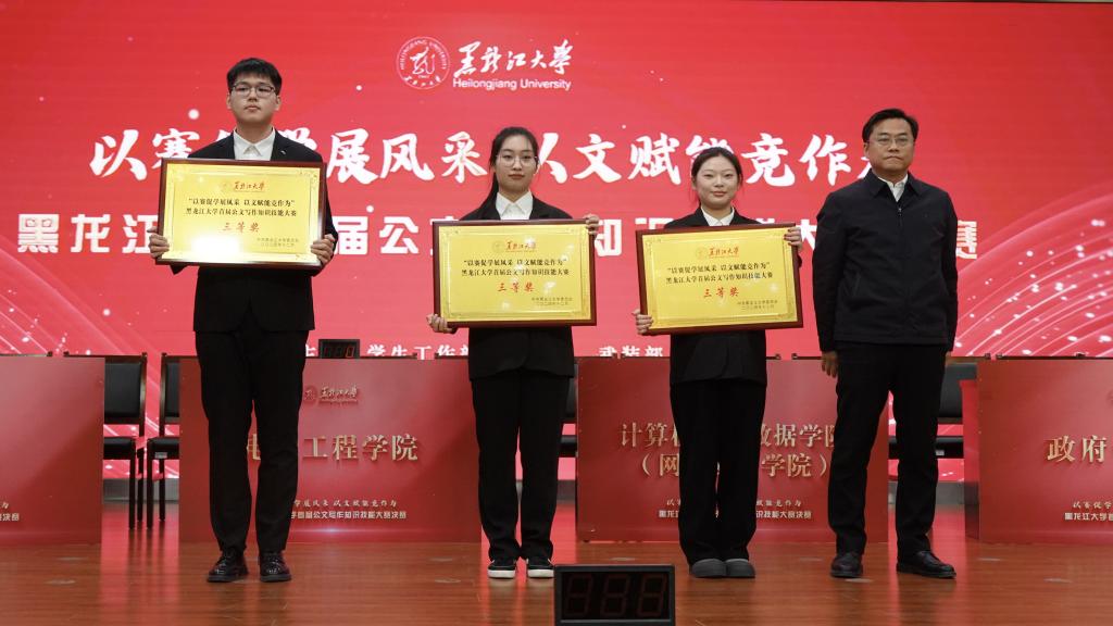 决赛通过必答题、抢答题和风险题三种形式进行,活动全程采取现场计分、评委仲裁等方式,保证公平公正。选手们从容应答、同台争锋,充分展示了个人理论水平和文字功底,彰显了黑大师生锐意进取、奋勇争先的青春风采。
