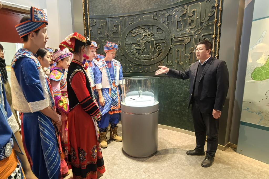 活动结束后,快闪活动组一行来到了6686博物馆,展示了来自南宁的非遗作品,并参观了校史馆和馆藏文物展,深入了解学校的发展历程和黑龙江流域少数民族文化。(摄影:孟真 王宏运)