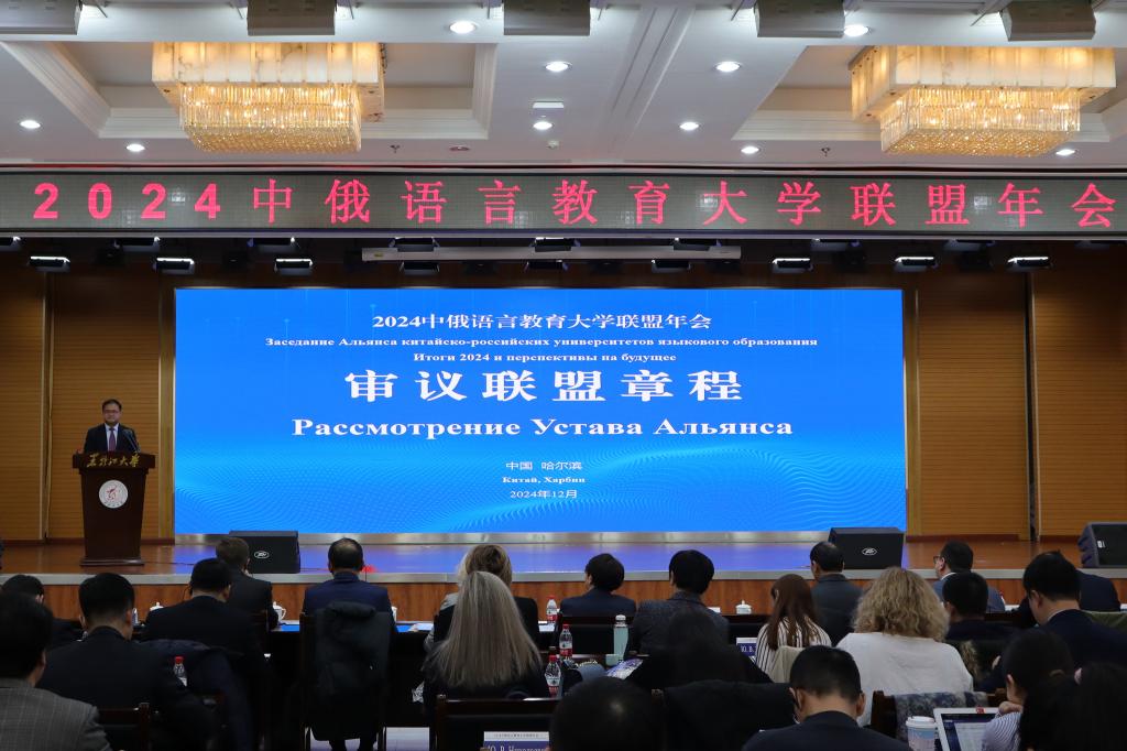 12月11日上午,2024中俄语言教育大学联盟年会在6686主楼一楼报告厅召开。黑龙江省教育厅副厅长曹叠峰,莫斯科国立语言大学第一副校长佩特鲁恰克,西伯利亚联邦大学副校长韦尔哈韦茨,坦波夫国立大学副校长古谢夫,6686校长王敬波,北京第二外国语学院校长计金标,广东外语外贸大学副校长刘建达,延边大学副校长张学武,贵州师范大学副校长乙引,以及中俄双方30余所高校100余名代表出席会议。本次会议由6686副校长井立强主持。