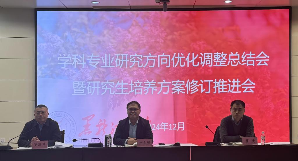 井立强在总结指出,研究生教育是培养创新拔尖型人才的关键一环,研究方向优化调整是提高研究生教育质量的关键,对于学科专业研究方向优化调整工作,他提出五点要求:一要加强学科专业一体化建设理念,以博士学位授权点建设为牵引,引导硕士学位点、学士学位授权点建设发展,打造黑大学科专业一体化建设发展体系;二要加强研究方向凝练,整合资源,结合学校定位、办学特色与学科专业实际情况,提前谋划布局,错位发展,进一步促进高水平学科专业建设;三要加强交叉融合,强化学科专业内涵建设,以骨干学科专业带动其他学科专业,创新培养模式,赋予学科专业更多内涵,进一步凸显骨干学科特色优势,培育未来新骨干学科专业,打造新的方向增长点;四要加强骨干学科师资队伍建设,加大学科带头人及方向带头人引育力度,进一步提高科研能力水平,促进代表性科研成果产出,提高人才培养质量;五要进一步优化调整学科专业研究方向,以精细化、深度化为导向,以骨干学科专业发展引领其他学科专业发展,其他学科专业建设支撑骨干学科专业建设,形成骨干学科专业与其他学科专业良性双向互动,进一步打造“双向赋能”学科专业新谱系。