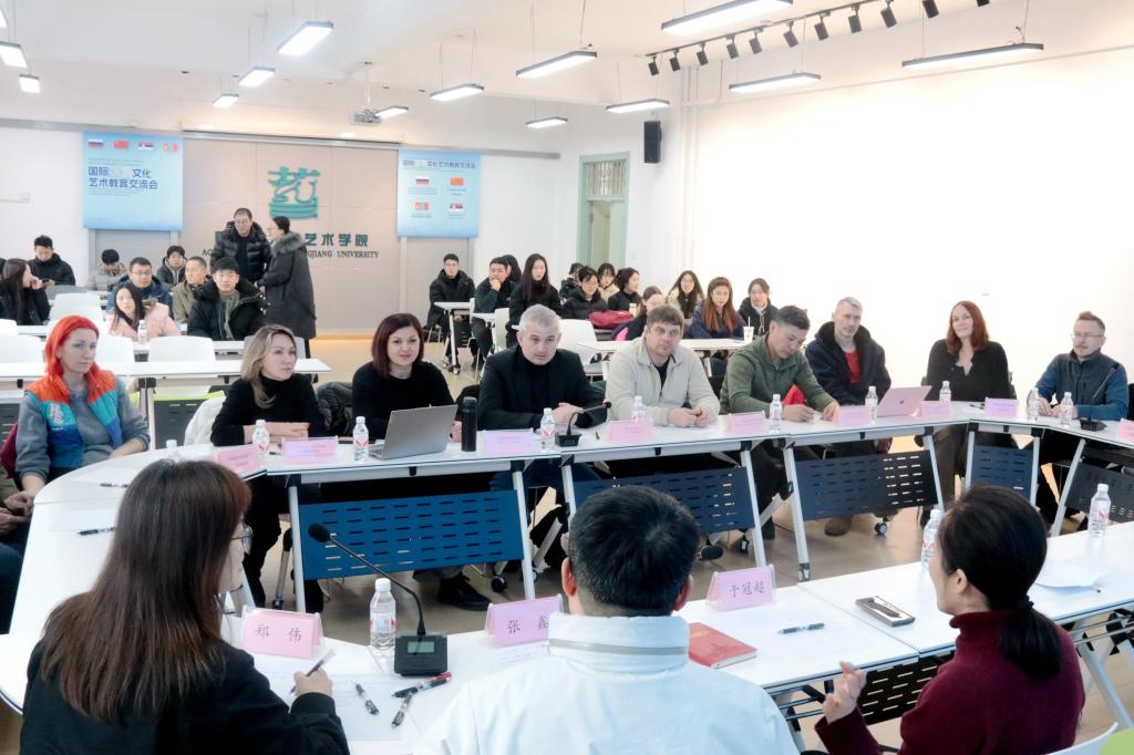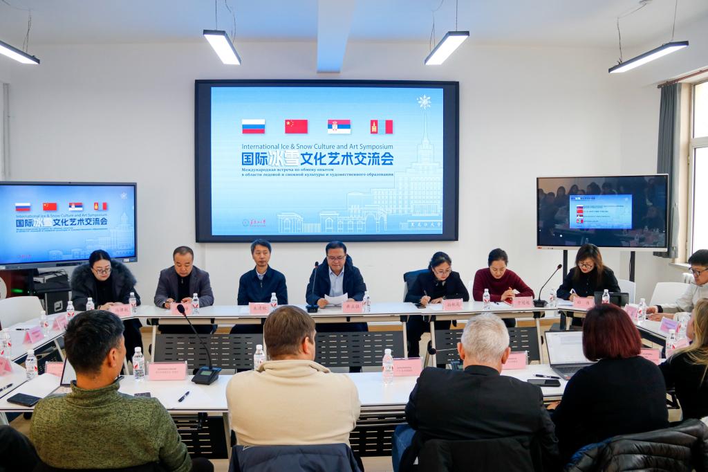 国际交流与合作处处长孙秋花、艺术学院院长于冠超等人分别围绕国际冰雪合作、冰雪文旅、冰雪文化艺术与产业对接等议题与来自俄罗斯、塞尔维亚和蒙古的艺术家们分别进行了交流。艺术家们还就冰雕冰灯艺术的创作灵感、技术手法及其在国际舞台上的发展趋势进行了深入探讨,并分享了各自国家独特的冰雪艺术传统及创新实践案例,展示了不同文化背景下对冰雪艺术的理解与表达,引发了与会者的强烈共鸣,现场气氛热烈,大家围绕着冰雪艺术的未来发展方向展开了广泛的讨论。