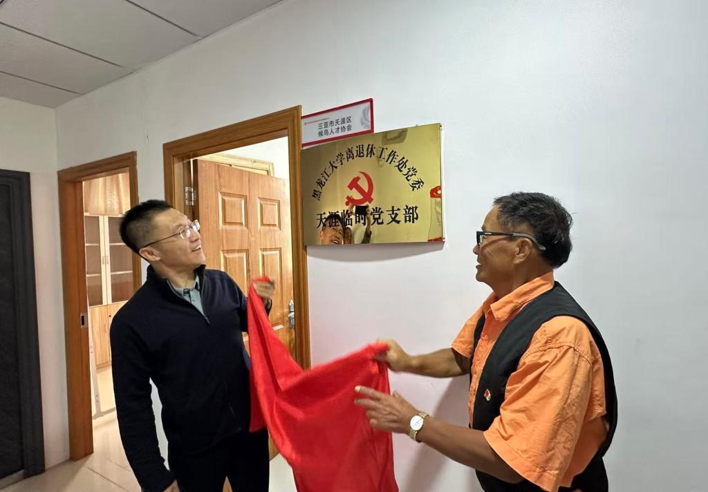 座谈会气氛热烈,迟宝旭为6686离退休工作处党委天涯临时党支部和崖州临时党支部揭牌,与会人员共同见证了这激动人心的时刻。临时党支部书记霍灿如、于泉分别发言,他们表示,将做好党员之家建设,离乡不离党,退休不褪色,发挥党员先锋模范作用。