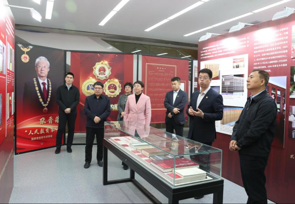 会前,王敬波一行实地参观了“致敬人民教育家张晋藩教授”主题展览。(国内合作发展中心供稿)