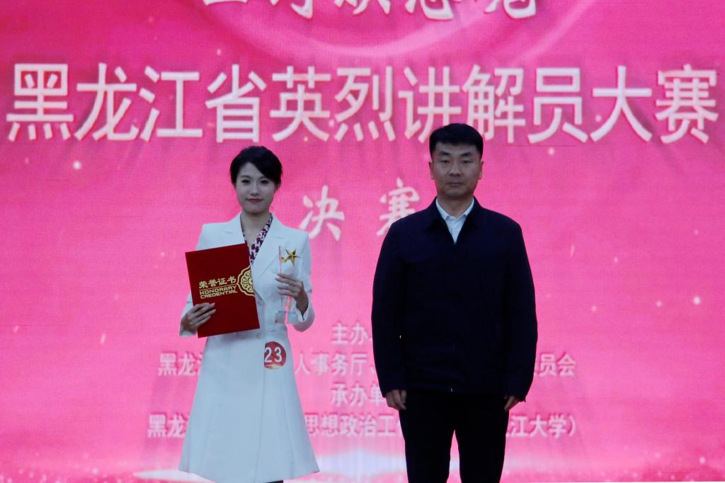 5月9日上午,由黑龙江省退役军人事务厅、共青团黑龙江省委员会主办,黑龙江省高校网络思政中心(6686)承办的“山河映忠魂”黑龙江省英烈讲解员大赛决赛在我校主楼一楼报告厅举行。省退役军人事务厅党组成员、副厅长王东平,团省委副书记张涛,校党委副书记刘凤影出席决赛现场,全省各市地退役军人事务局负责人、全省高校师生代表现场观看了比赛。