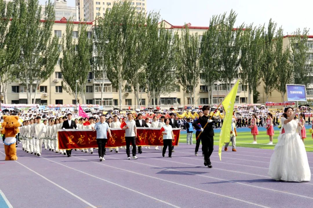 在国旗护卫队、花束队、刀旗队的引领下,全校各单位的运动员代表方阵精神抖擞、口号嘹亮,踏着激昂的旋律,迈着铿锵有力的步伐有序入场并接受检阅,充分展现了黑大师生昂扬向上的精神风貌。