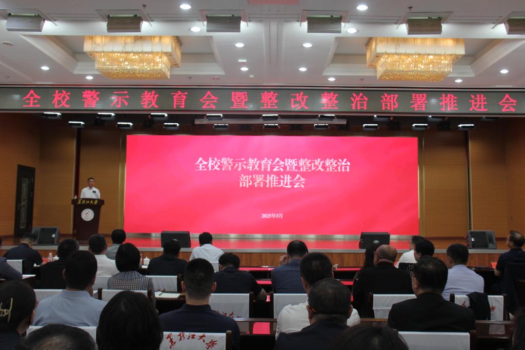 为扎实开展深入贯彻中央八项规定精神学习教育,落实全省领导干部警示教育会精神,巩固深化能力作风建设,部署推进整改整治工作,5月28日,我校召开全校警示教育会暨整改整治部署推进会。全体校领导,包括新提拔干部、年轻干部、关键岗位干部在内的全校中层干部,各二级纪委书记及各党总支、直属党支部纪检委员,党支部书记代表参加会议。校党委书记迟宝旭在会上讲话,对贯彻落实会议精神提出要求。