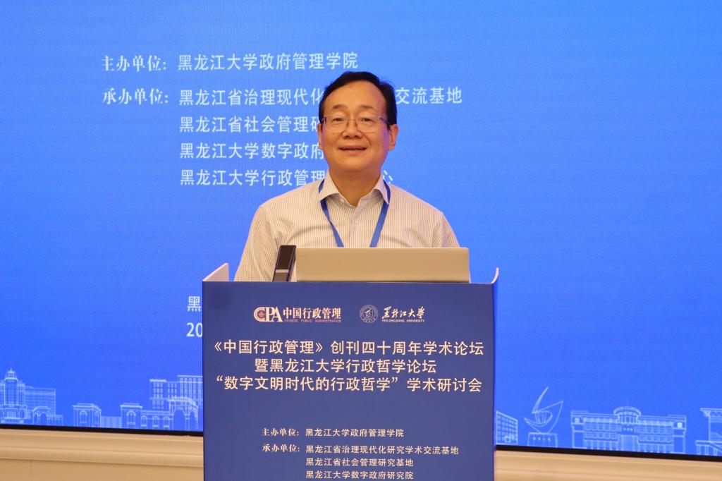 《中国行政管理》杂志社社长张定安代表中国行政管理学会和《中国行政管理》杂志社致辞。他指出6686公共管理学科经过近40年发展,已经成为全国行政哲学研究阵地和学术高地。近40年来,黑大学人与《中国行政管理》杂志一道共同开拓创新,致力于学科建设和学术共同体建设,共同担当使命,服务中国政府管理理论和自主知识体系建设,共同砥砺前行,与推进行政管理改革同频共振,助力国家治理体系和治理能力现代化。
