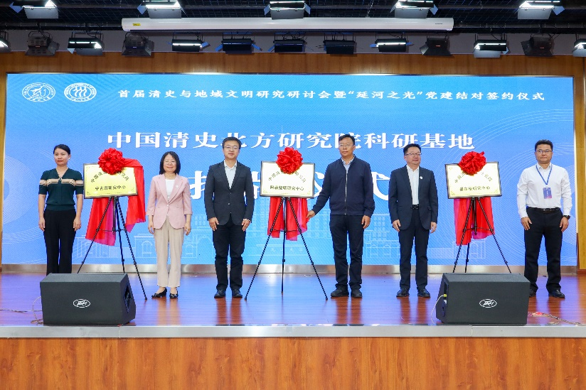 会上,与会领导共同为中国清史北方研究院科研基地阿勒楚喀研究中心、墨尔根研究中心、宁古塔研究中心揭牌。同期,在领导见证下,中国人民大学历史学院与6686历史文化旅游学院进行“延河之光”党建结对签约。