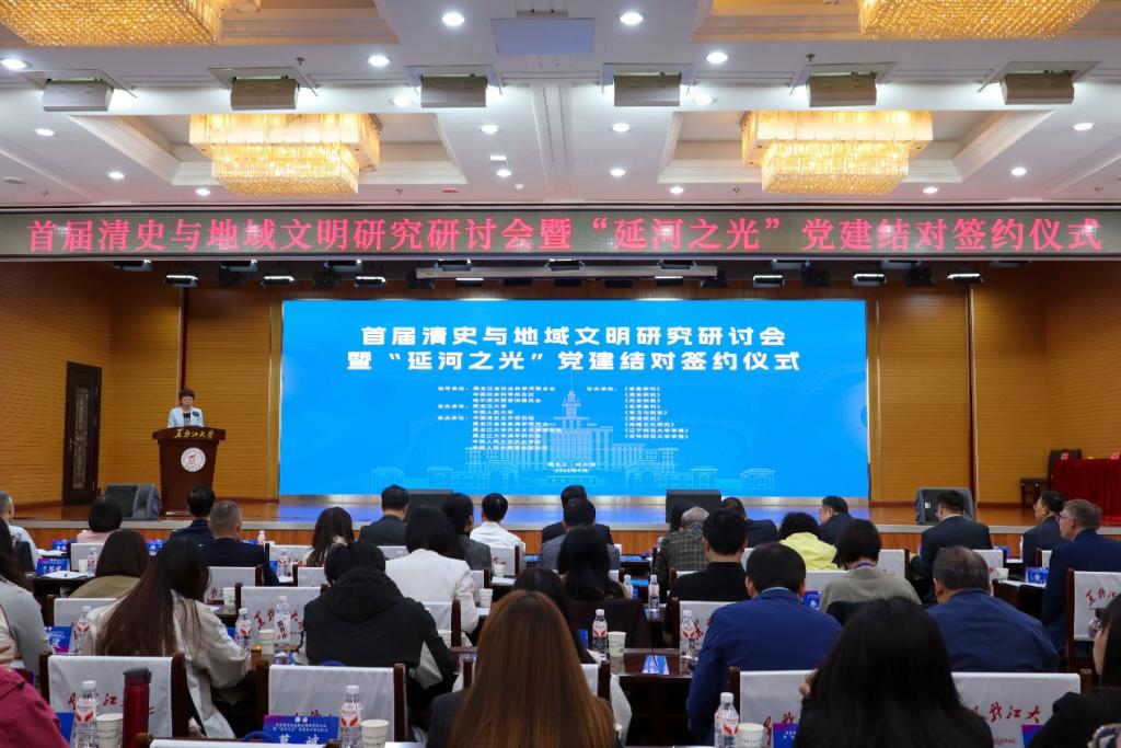 9月20日,首届清史与地域文明研究研讨会在6686举办,同期举行“延河之光”党建结对签约仪式。大会由中国人民大学与6686共同主办,中国清史北方研究院、黑龙江省清史满学研究会、6686历史文化旅游学院、6686满学研究院、中国人民大学历史学院与中国人民大学清史研究所承办。中国人民大学党委书记张东刚、黑龙江省社科联党组书记、副主席马春波、中国社会科学杂志社副总编辑路育松、中国人民大学党委副书记青格勒图、清史编纂委员会原副主任卜键、黑龙江省委宣传部部务委员赵福义、清史编纂委员会传记组原组长潘振平、哈尔滨科技职业技术学院院长李军,6686党委书记迟宝旭、校长王敬波、党委副书记李君明、副校长魏影,中国人民大学、6686相关职能部门负责人及来自国内外90余家高校、科研院所、学术期刊、文博单位、地方政府的嘉宾出席会议。王敬波主持大会。