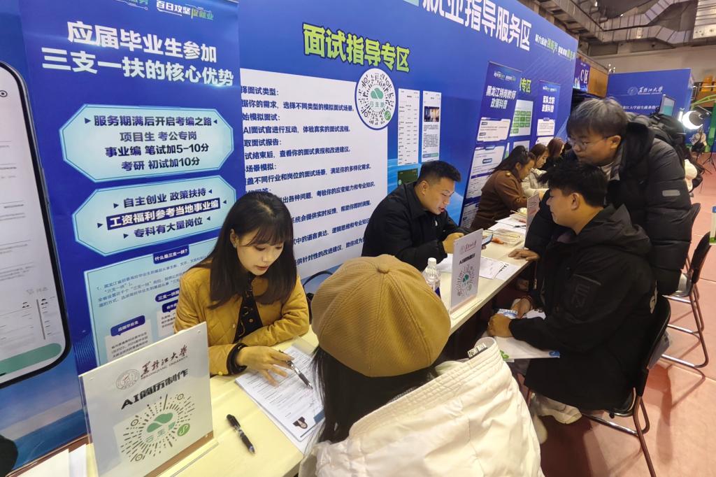 本次双选会再次升级服务模式,专门设置AI简历智写区、面试模拟实训区,“未来有你”职业生涯与学业规划工作室的辅导员老师聚焦简历诊断、面试技巧、职业规划、基层就业项目等十大主题,为毕业生提供“一对一”个性化指导服务,本场双选会累计为800余名毕业生提供现场咨询服务,有效解决了同学们求职过程中的实际困惑。