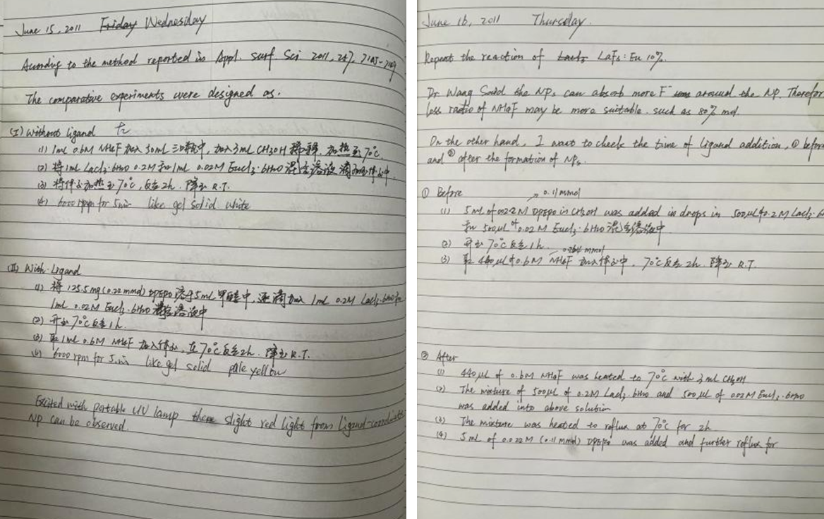 许辉教授2011年博士后研究时期的原始实验记录