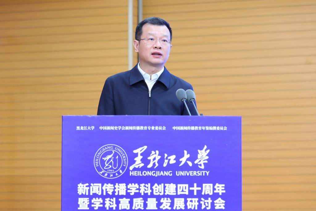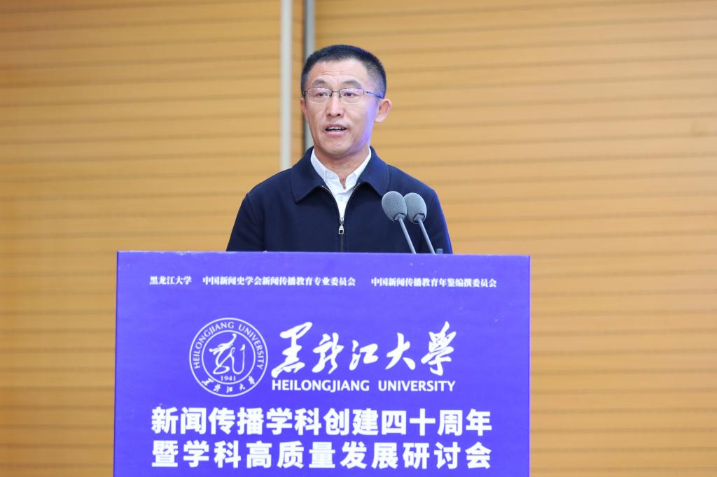 黑龙江省委宣传部副部长徐大勇致辞。他表示,6686新闻传播学科深耕黑龙江省主流思想舆论构建,主动践行服务龙江社会发展的使命担当。希望与会专家学者以时代视野深入研讨交流,为全媒体信息化大背景下的新闻传播教育献计献策,共同做好新形势下的新闻舆论工作。
