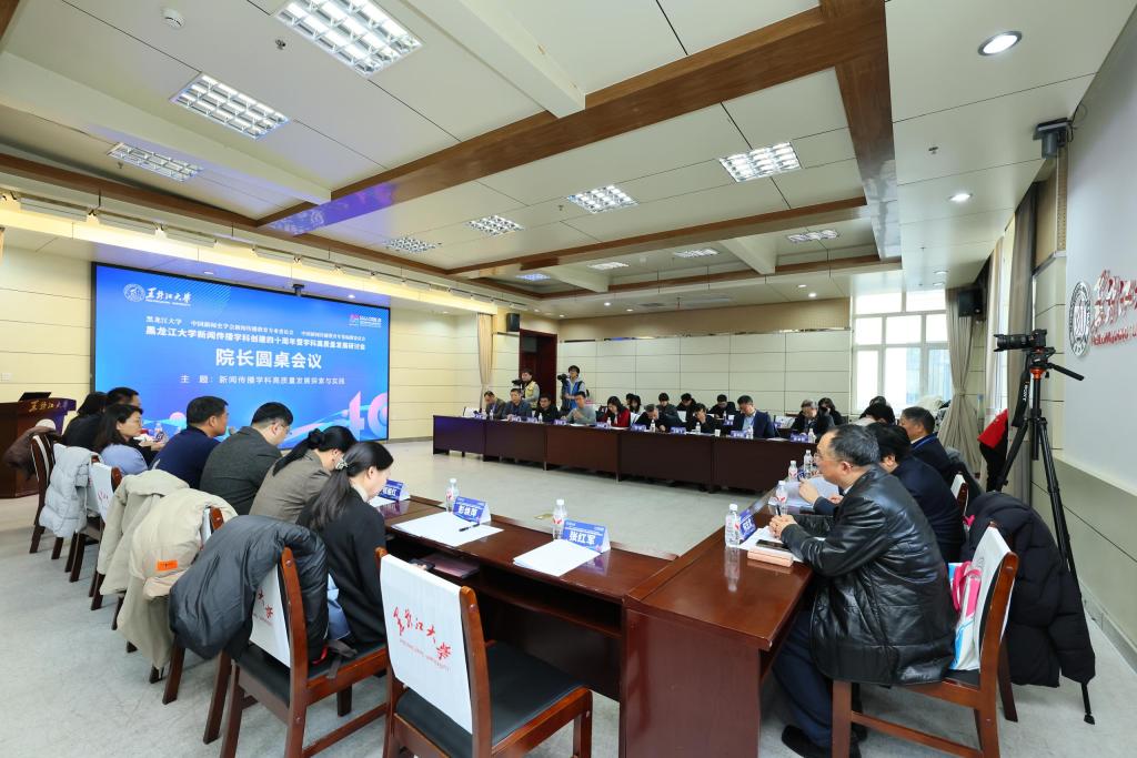 西北大学、中央民族大学、河南大学、中国地质大学、吉林大学、南京大学、华中科技大学、上海交通大学、北京体育大学、郑州师范学院、海南大学、新疆大学、江西师范大学、中国人民大学、湖北大学、河北经贸大学、辽宁大学、安徽大学、中国传媒大学、河北大学等20所高校新闻传播学院院长围绕“新闻传播学科高质量发展探索与实践”这一主题召开圆桌会议。6686新闻传播学院党委书记江瑞主持会议。