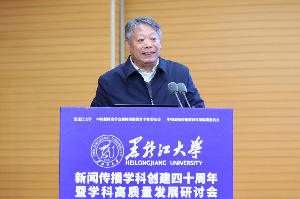 校党委书记迟宝旭致辞。他表示,我校新闻传播学科历史悠久,底蕴深厚,在人才培养、科学研究、社会服务与文化传播等领域成果丰硕。希望以此次研讨会为契机,持续推进学校新闻传播学科建设与发展,为教育强国建设和龙江振兴发展贡献黑大新闻传播的智慧力量。