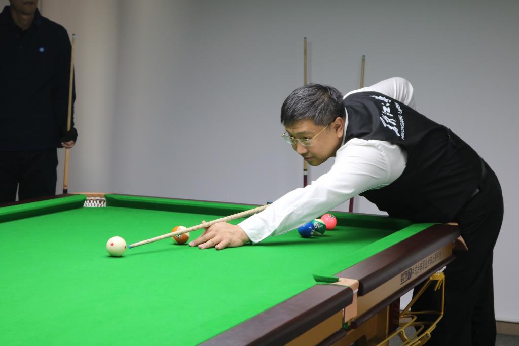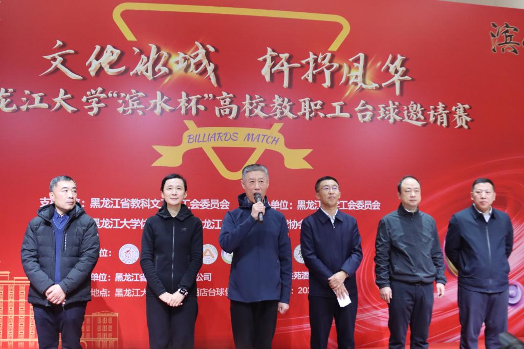 迟宝旭在开幕式上致辞。他表示,台球运动兼具智慧与风度,与教育工作者追求的专注、沉稳精神相契合,本次比赛不仅是台球技艺的交流,更是冰城高校间情感与文化的融合,希望通过比赛促进教职工身心健康,深化校际友谊与合作,共同为龙江高等教育的高质量发展贡献力量。