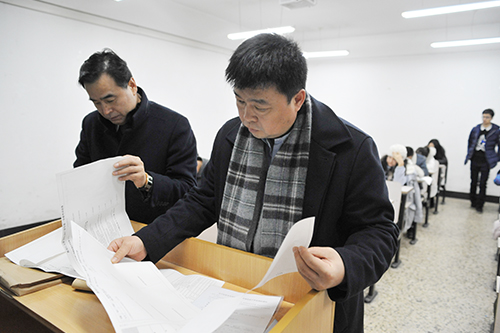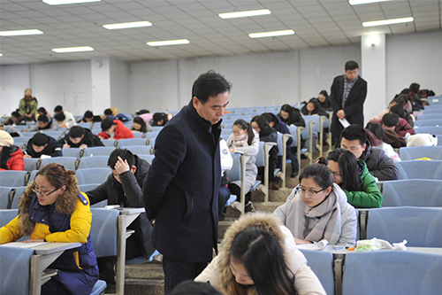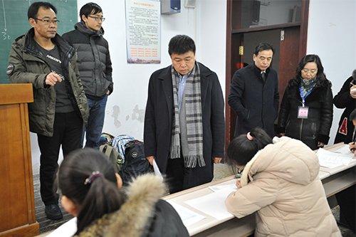 为进一步严肃考风考纪,维护考试公平,12月27日上午,我校副校长严明,教务处、学工部等相关部门负责同志一行在汇文楼考场进行巡考,重点对考风考纪进行了巡查。