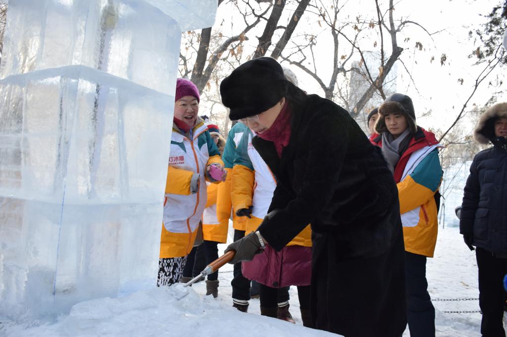 12月29日上午,校长何颖率我校社科处、教务处、资产处、宣传部、创业教育学院以及学工部等部门同志一行八人,前往兆麟公园视察我校的“国家艺术基金”培训项目实训基地并观摩学员冰雕的实践成果。