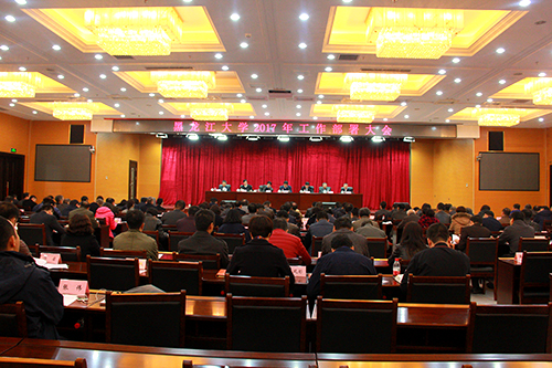刘德权书记就如何做好2017年重点工作提出了意见。一是准确把握形势,在研究教学型转型发展上奋发有为。要以研究教学型大学建设为出发点和发力点,调整思路、更新观念、主动作为。二是突出人才发展战略地位,在实施三大办学战略上奋发有为。要统筹推进人才优先发展、一流学科、全方位对俄办学战略,支撑研究教学型转型发展。三是着眼增强师生获得感,在推进五大改革上奋发有为。在人才培养模式改革、岗位管理和绩效分配制度改革、校院两级管理体制改革、马克思主义理论学部制改革、公共资源有偿使用改革等方面取得实质性突破。四是提高教育质量和办学水平,在深化内涵建设上奋发有为。要深入贯彻落实省长重要办学指示,强化科研创新和成果转化,提升国际交流合作水平,推进学风和师德师风建设。五是认真贯彻落实高校思想政治工作会议精神,在深化全面从严治党上奋发有为。要坚持思想建党和制度治党相结合,以贯彻落实高校思想政治工作会议精神为契机,深入落实全面从严治党责任,真正把思想教育从严、干部管理从严、作风要求从严、组织建设从严、制度执行从严要求落到实处。此外,还要加大民生保障力度,在增进师生福祉上奋发有为。要努力提高教职工待遇,促进大学生就业,改善校园基础设施,建设好美丽黑大、平安黑大、幸福黑大、和谐黑大。